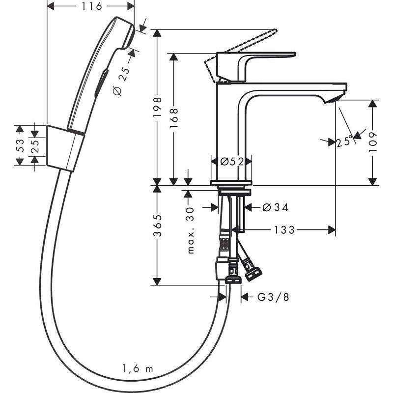 72215000 HG Rebris S смеситель для раковины 110, с гигиеническим душем