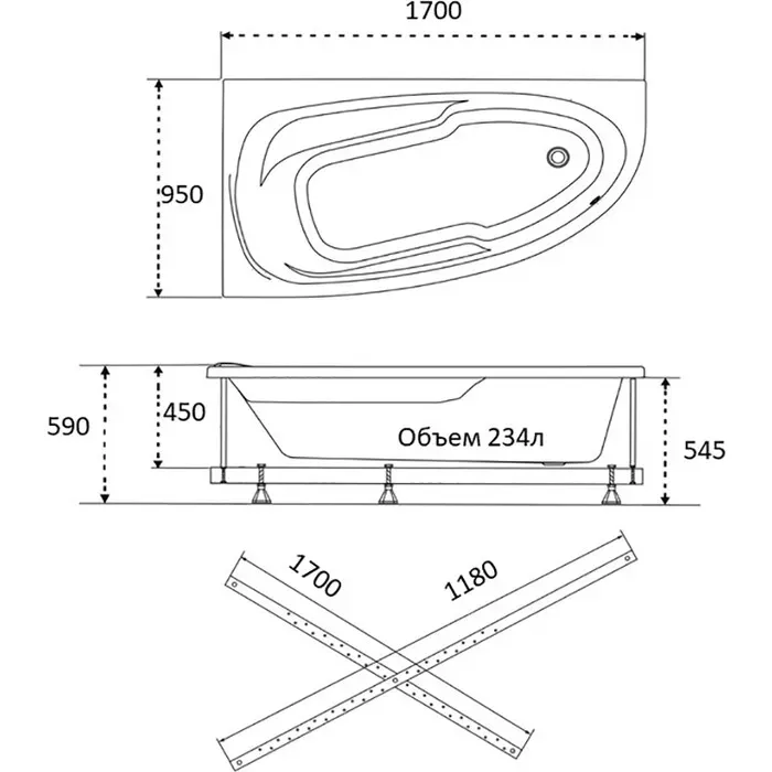 Акриловая ванна 1ACReal Мадрид Щ0000045646 правая обрезанная 170x95 см белый купить