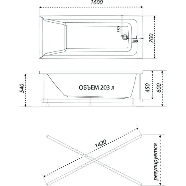 Акриловая ванна 1ACReal Тори Щ0000044550 160x70 см на Х-каркасе белый
