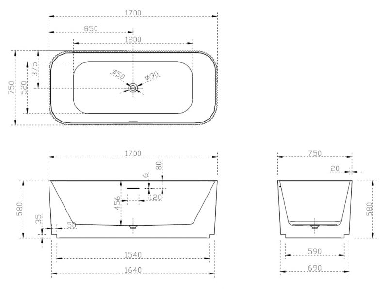 Акриловая ванна ABBER 170x75см AB9363-1.7