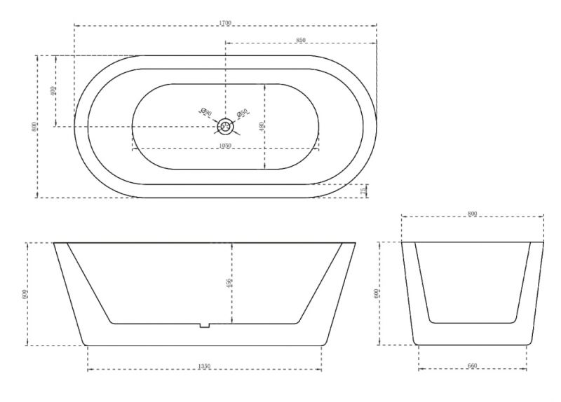Акриловая ванна ABBER 170x80см AB9345-1.7
