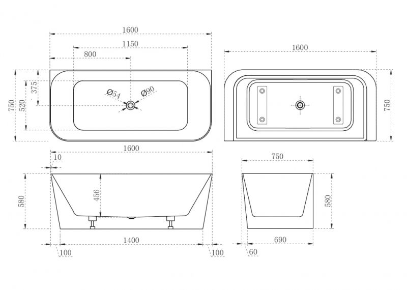 Акриловая ванна ABBER AB9223-1.6 160x75см белый