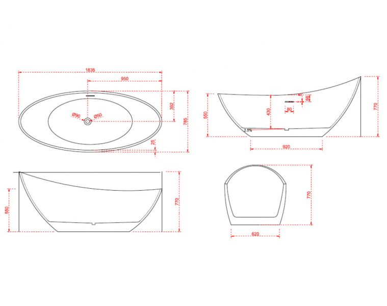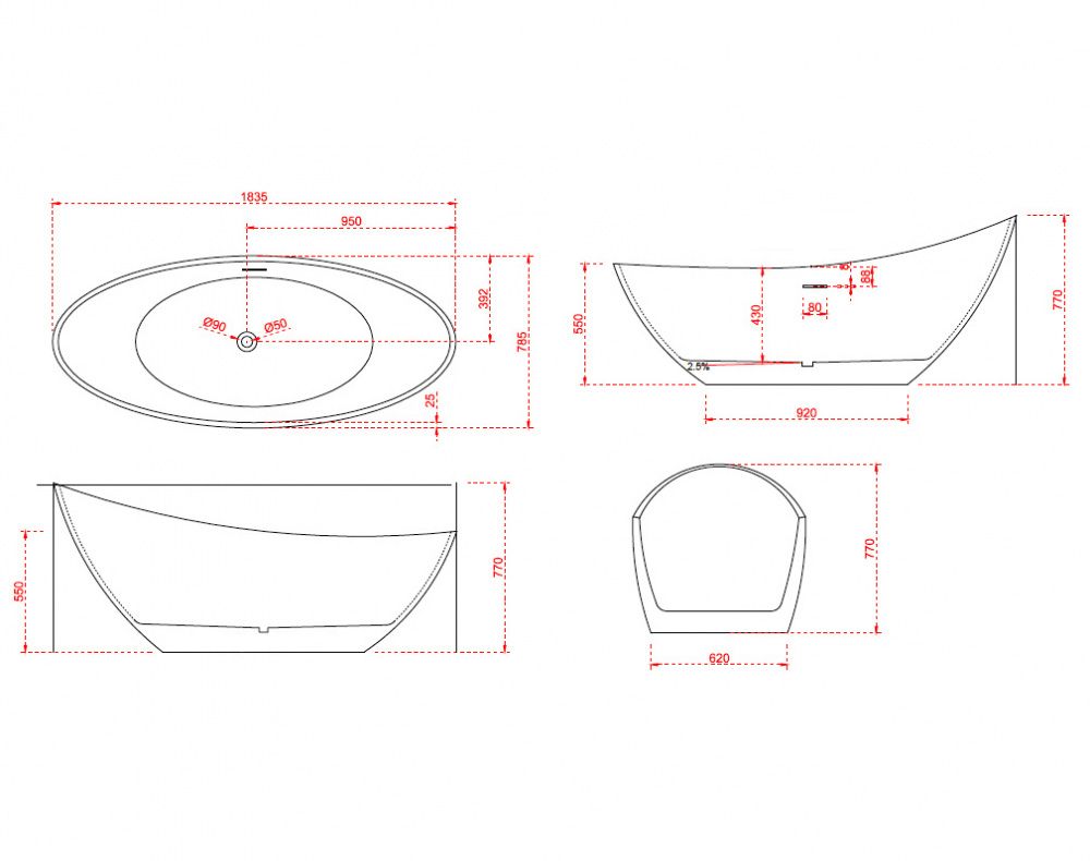 Акриловая ванна ABBER AB9233 184x79x77Овальная акриловая ванна с плавными линиями украсит любую ванную комнату.Ванна из литого акрила, армированная. Материал отличается прочностью и имеет гладкую поверхность без пор, что препятствует размножению бактерий и облегчает уход за ванной.