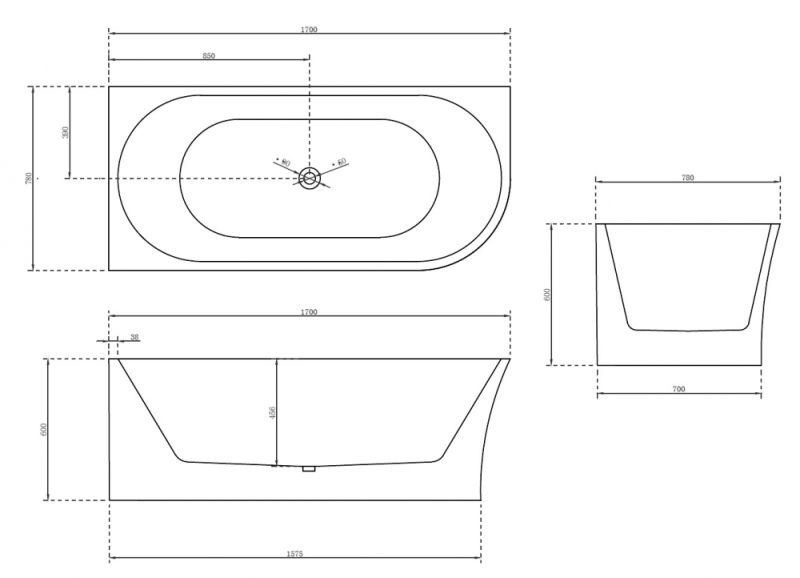 АКРИЛОВАЯ ВАННА ABBER AB9257 L 170х78