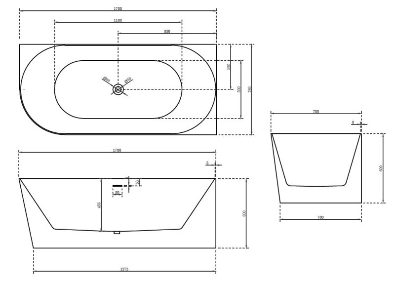 Акриловая ванна ABBER AB9258-1.7 R 170x78x60