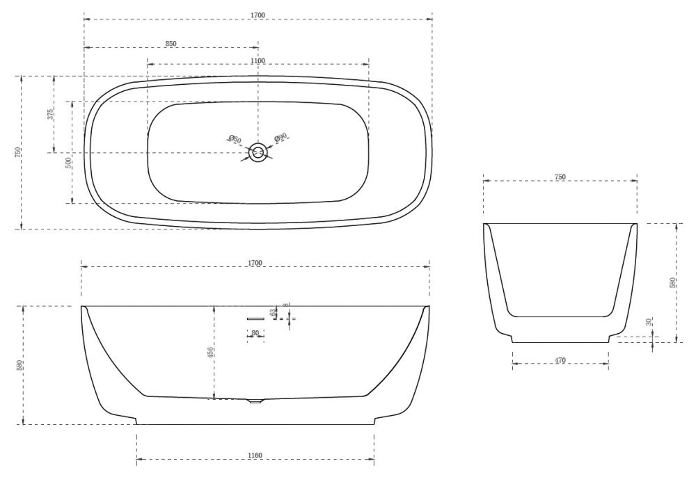 Акриловая ванна ABBER AB9269 170x75x58