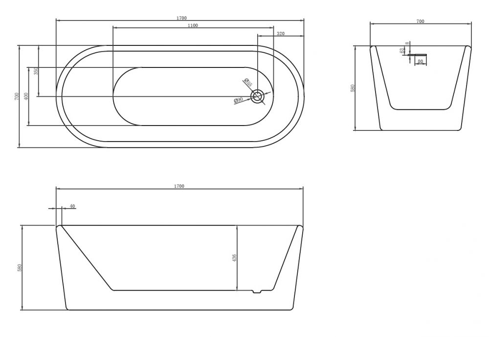 Акриловая ванна ABBER AB9272-1.7 170x70