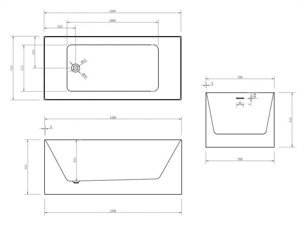 Акриловая ванна ABBER AB9274-1.5 150x70x60
