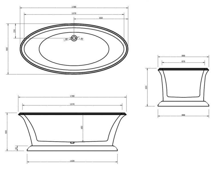 Акриловая ванна ABBER AB9289 170X80 купить