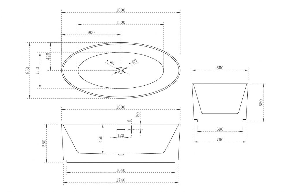 Акриловая ванна ABBER AB9441-1.8 180x85см белый