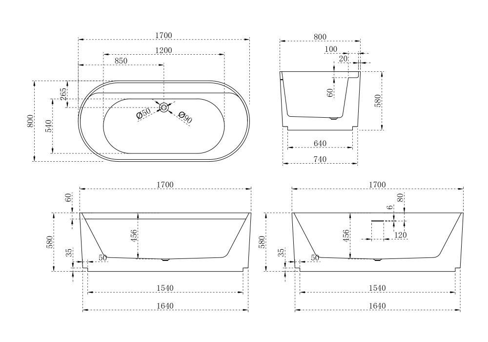 Акриловая ванна ABBER AB9444MW 170x80см белый