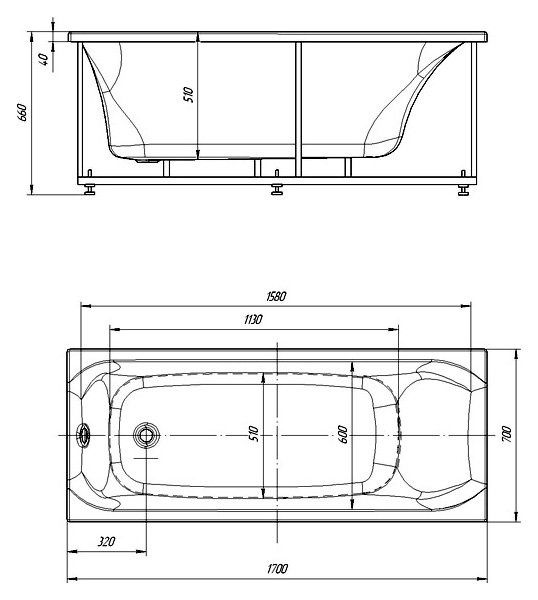 Длина, см:170Ширина, см:70Высота, см:66Глубина, см:51Форма:ПрямоугольнаяВнутр. размер дна, см:113Внутр. размер ванны, см:158Внутренняя ширина, см:60Макс. емкость, л:280Вес, кг:45