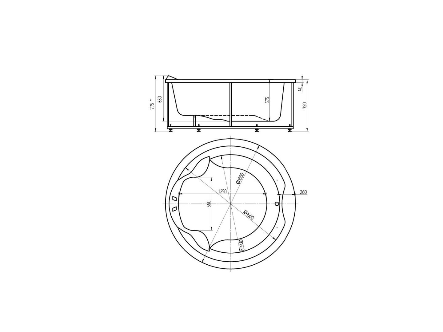 Высота, см:72–77,5Глубина, см:57,5Ориентация :ВсеФорма:КруглаяВнутр. размер дна, см:137Внутр. размер ванны, см:160Макс. емкость, л:690Вес, кг:100Диаметр:180