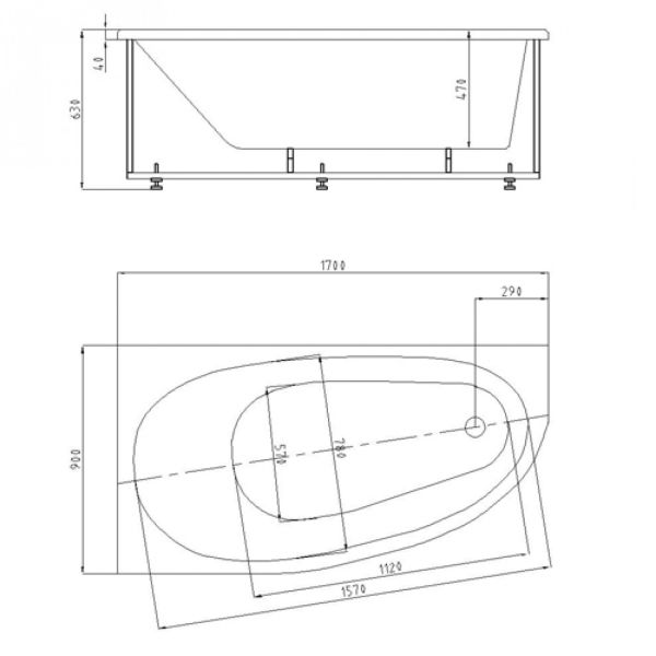 Длина, см:170Ширина, см:90Высота, см:63Глубина, см:47Ориентация :ВсеФорма:АсимметричнаяВнутр. размер дна, см:112Внутр. размер ванны, см:157Внутренняя ширина, см:78Макс. емкость, л:290Вес, кг:45
