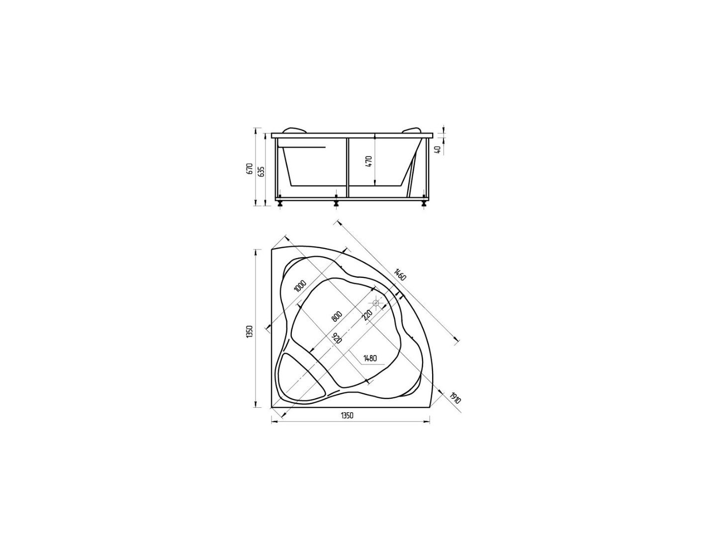 Длина, см:135Ширина, см:135Высота, см:67Глубина, см:47Форма:УгловаяВнутр. размер дна, см:92Внутр. размер ванны, см:146Внутренняя ширина, см:80Макс. емкость, л:270