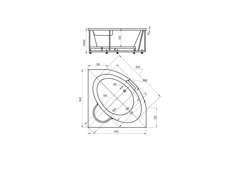 Длина, см:146Ширина, см:146Высота, см:63–66Глубина, см:46Форма:УгловаяВнутр. размер дна, см:106Внутр. размер ванны, см:146Внутренняя ширина, см:93Макс. емкость, л:310Вес, кг:60