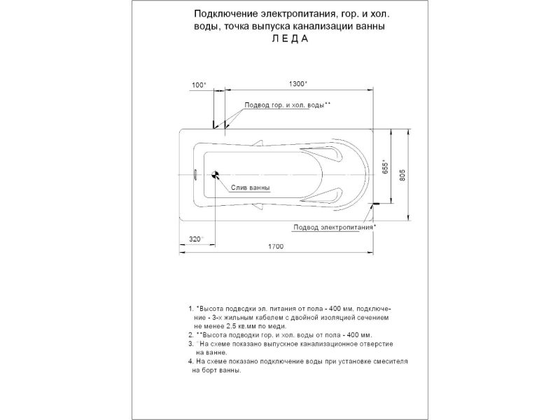 • Состав комплекта: Ванна, каркас, Слив-перелив