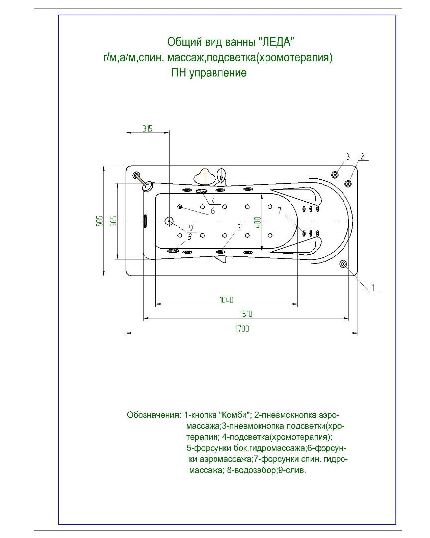 • Так-же ванну можно укоплектовать Гидромассажным оборудованием