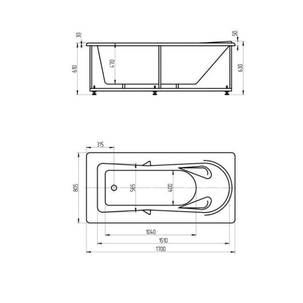 Длина, см:170Ширина, см:80,5Высота, см:61Глубина, см:47Форма:ПрямоугольнаяВнутр. размер дна, см:104Внутр. размер ванны, см:151Внутренняя ширина, см:56,5Макс. емкость, л:235Вес, кг:40