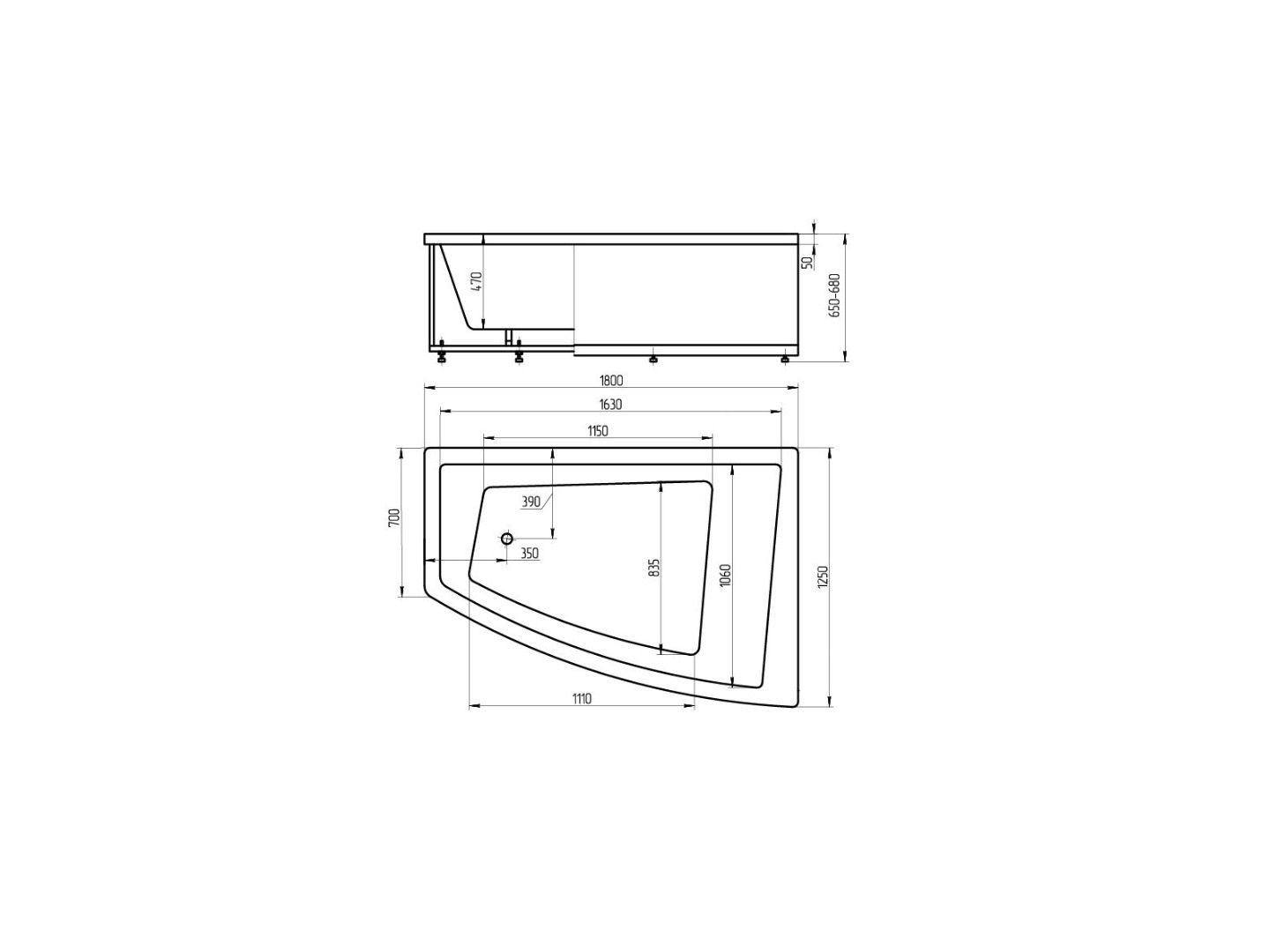 Асимметричная форма ванны Оракул позволит Вам максимально эффективно занять свободное пространство ванной комнаты. Вместе с тем внутреннее пространство и ёмкость ванны нельзя отнести к стандартным. Ведь 340 литров — это объем, достойный королей, которые, быть может, пожелают принимать ванну со своими королевами.