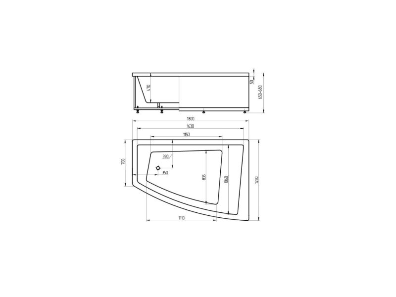 - Состав комплекта: Ванна, каркас, Слив-перелив