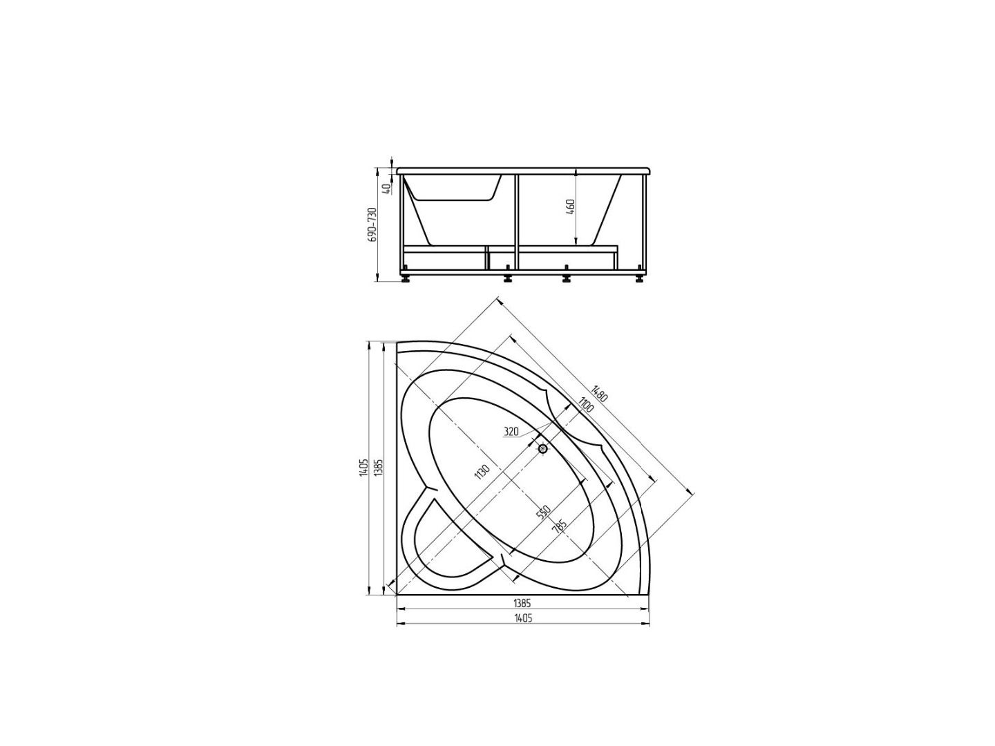 Акриловая ванна АКВАТЕК Поларис-1 140x140 см без гидромассажа