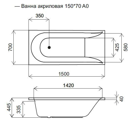 W72A-150-070W-A2 Ванна акриловая spirit 150x70, без слива/переливаДАННЫЕ ОБ ИЗДЕЛИИ:Ширина изделия(мм) 1500