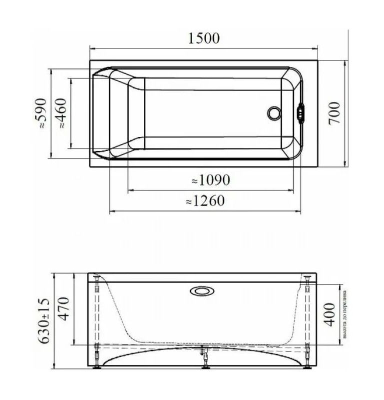 Акриловая ванна Aquanet AGATA 150х70 00347931