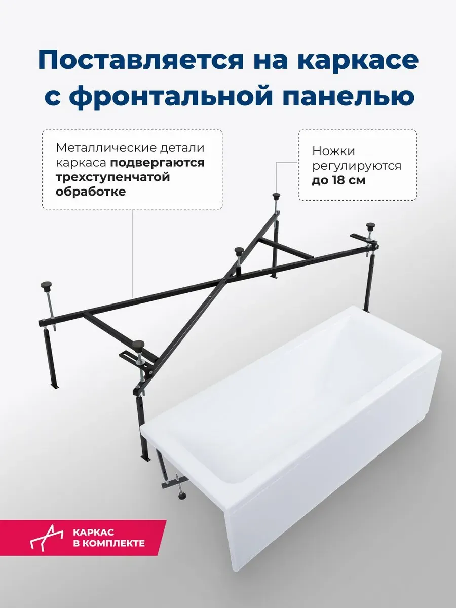Акриловая ванна Aquanet Bright 347142 180x70 см с каркасом и фронтальной панелью купить