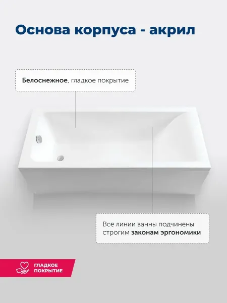 Акриловая ванна Aquanet создана с учетом растущего спроса на ванны простой прямоугольной формы в популярных размерах. Это модель с прямыми бортами и пологой спинкой, где соблюден идеальный угол для комфортного нахождения в ванне. Спинка плавно перетекает в бортик, поэтому релакс гарантирован даже без использования подголовника. Все линии ванны подчинены строгим законам эргономики. Чаша в этой ванне устроена таким образом, что для обозначенных размеров в ней достигнут максимально возможный внутренний объем, и это при комфортной глубине от слива ванны до борта. Ванна рассчитана на нагрузку свыше 300 кг, так что даже крепкий мужчина сможет без опаски находиться в ней. Двойной слой армирования обеспечивает надежность чаши, а закладные из МДФ-плит в местах наибольшей нагрузки усиливают эффект.
