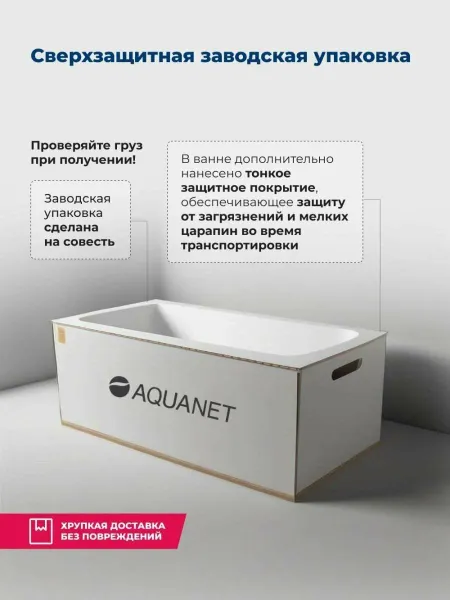 Акриловая ванна Aquanet Extra 150x70 может стать настоящей изюминкой ванной комнаты. И все благодаря элегантным линиям, более покатым у изголовья и резко очерченным – в изножье. Форма чаши содержит боковые детали, которыми удобно пользоваться как подлокотниками. Особенно актуально, если в семье есть дети и пожилые люди. Борт ванны со стороны изголовья сделан под углом, который соответствует принципам эргономики, а значит, находится в такой ванне – настоящий отдых для всего тела. Эксклюзивным для ванны Extra является и антискользящее покрытие. Оно похоже на застывшие на днище в виде ромбического узора маленькие круглые капельки воды. Для изготовления ванны использован сантехнический акрил толщиной 4 мм, а для усиления корпуса в местах наибольшей нагрузки установлены закладные из МДФ-плит и сделано двухслойное армирование стеклоровингом.