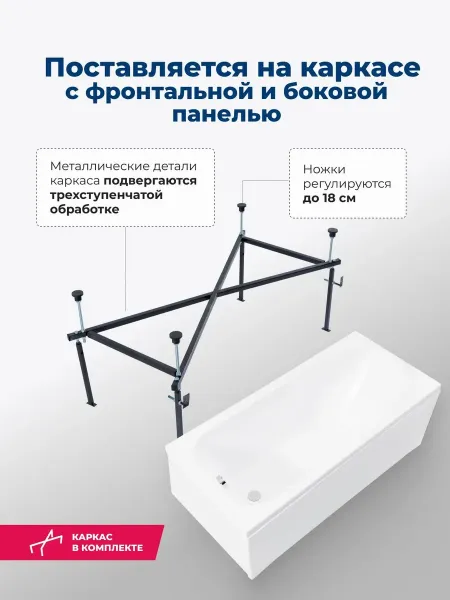 Акриловая ванна Aquanet Nord 347885 150x70 см с каркасом с боковой и фронтальной панелями