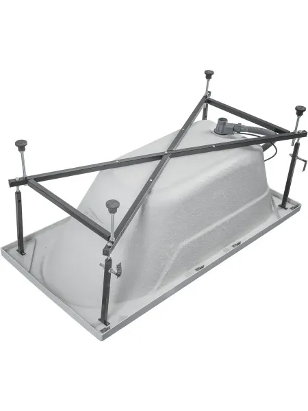 Ванна уже установлена на жесткий сварной каркас из металлического профиля. Металлические детали каркаса подвергаются трехступенчатой обработке, когда сначала профильная труба проходит абразивную зачистку на специальном станке, после чего готовые детали обрабатывают каустической содой, и, просушив, покрывают с помощью электростатического распылителя молотковой краской по металлу. Это гарантирует равномерность окрашивания и стойкость покрытия.
