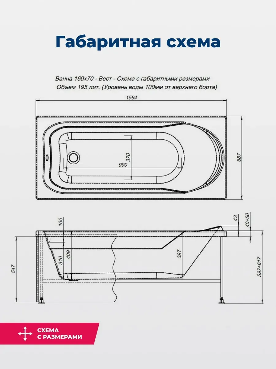 Акриловая ванна Aquanet West 160x70 - прекрасный выбор модели эконом-класса сраднего размера. На... Подробнее