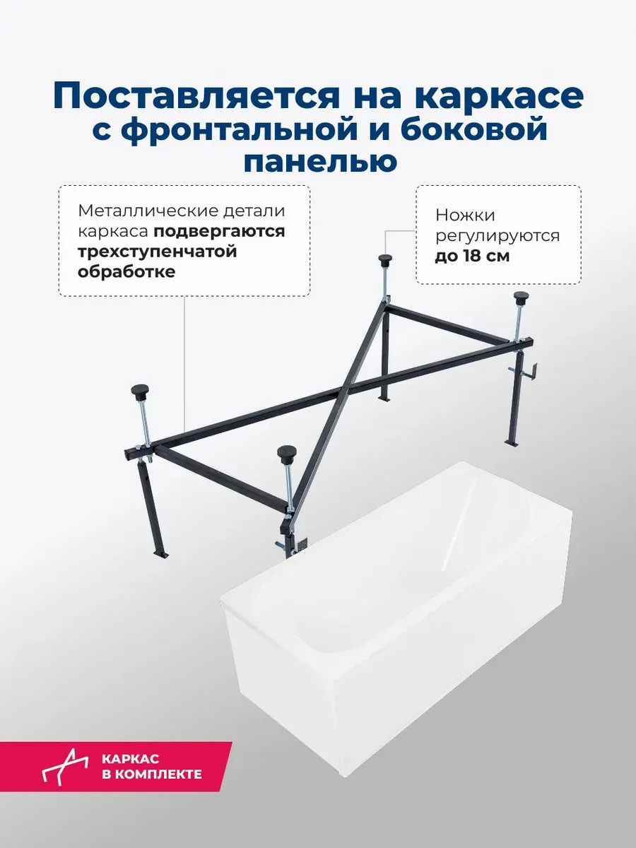 Акриловая ванна Aquanet West 347901 160x70 см с каркасом с боковой и фронтальной панелями купить