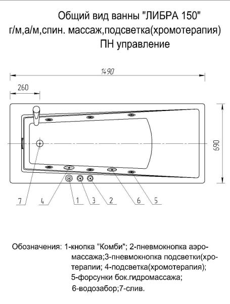 Габариты (Д Ш), см: 150х70Высота с опорой, см: 62Объем, л: 170 Форма: прямоугольнаяМонтаж: пристеннаяРасположение перелива: стандартноеДиаметр слива ванны, см: 5,2Материал: 100% литьевой акрилТолщина акрилового листа, мм: 4Гарантия: 20 летСтрана: Россия Вид опоры: каркас сборно-разборный сварной, есть в комплектеЭкран: фронтальный в комплектеСлив-перелив: есть, в комплектеНескользкая поверхность: даПодголовник: приобретается отдельноРучки: приобретаются отдельно Система гидромассажа: установка по желаниюАэромассаж: установка по желаниюХромотерапия: установка по желаниюРучки, поручни для ванны: установка по желаниюВстроенные смесители: установка по желаниюИзменение конструкции каркаса: установка по желаниюОзонирование: нет, установка не предусмотренаЗащита от сухого пуска: установка по желаниюУправление: любое по желанию