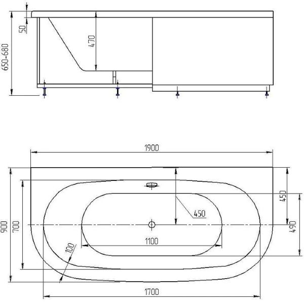 Акриловая ванна Aquatek Морфей MOR190-0000059 190х90 см с фронтальным экраном вклеенный цельносварной металлический каркас