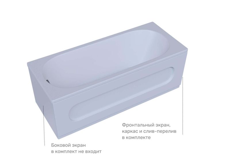 Акриловая ванна Aquatek Оберон OBR180-0000003 180х80 см с фронтальным экраном сборно-разборный сварной каркас