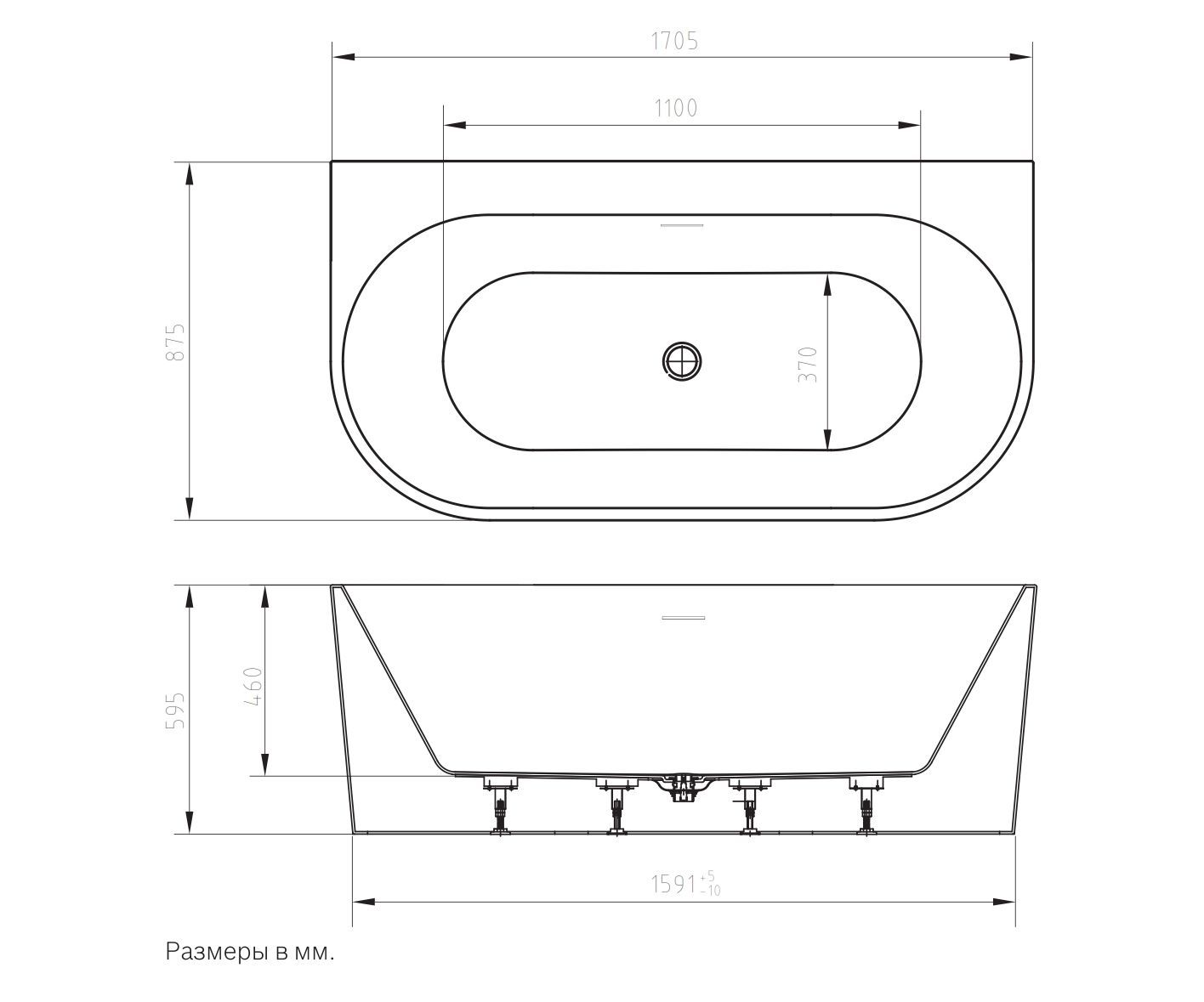 Оснащение: ванна, слив-перелив, донный клапан, гидрозатвор, каркас, коробка