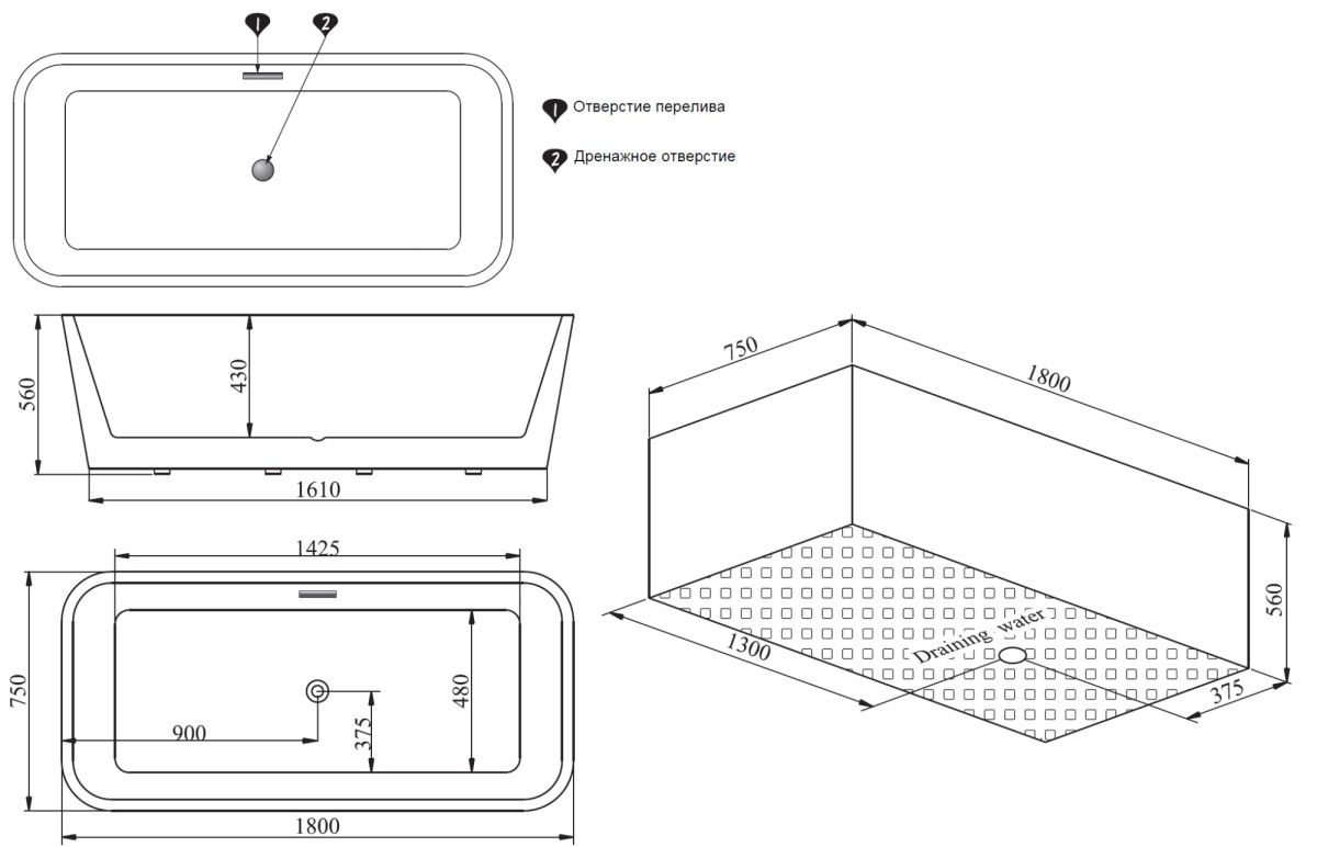 Артикул краткий:AZМ702Форма:прямоугольнаяОриентация:равносторонняяСтрана:КитайВид установки:отдельностоящаяМатериал:акрилГарантия:5 летРасположение перелива:по центру