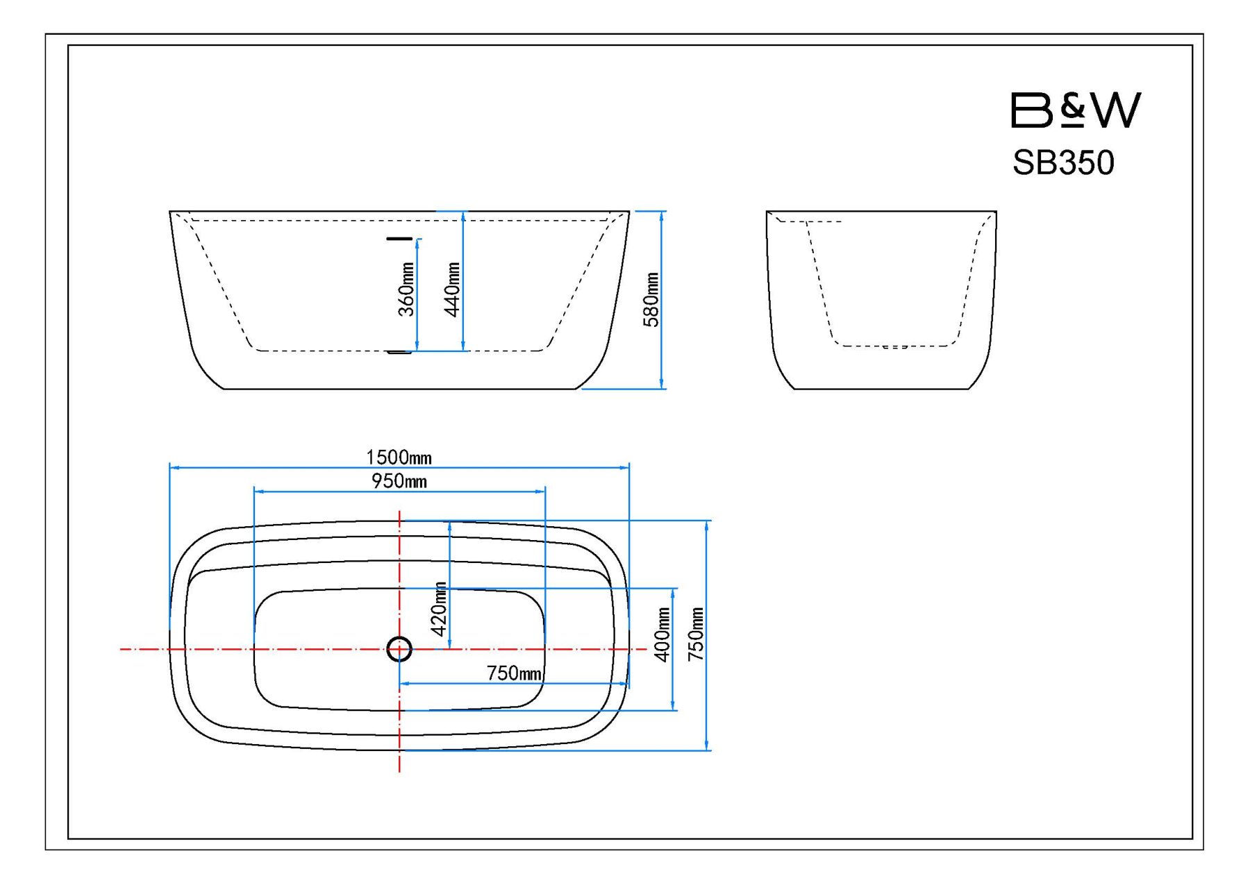 Акриловая ванна Black&White Swan SB350 1700 x 780 x 600 мм