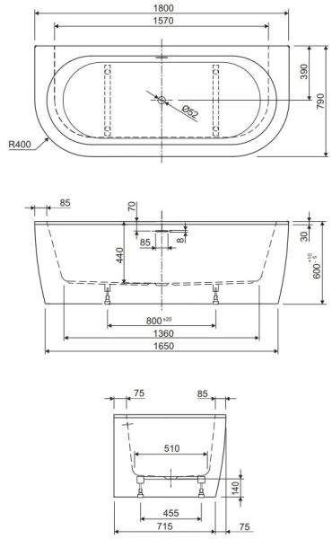 Акриловая ванна Cezares Slim Wall 180x80см белый SLIM WALL-180-80-60-W37-SET