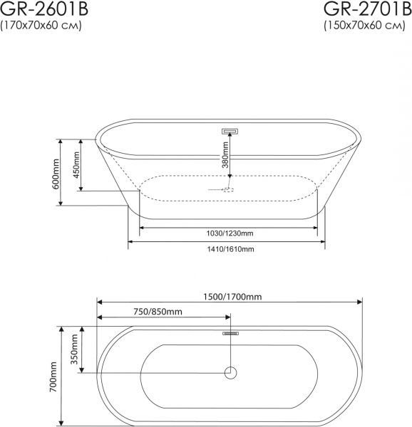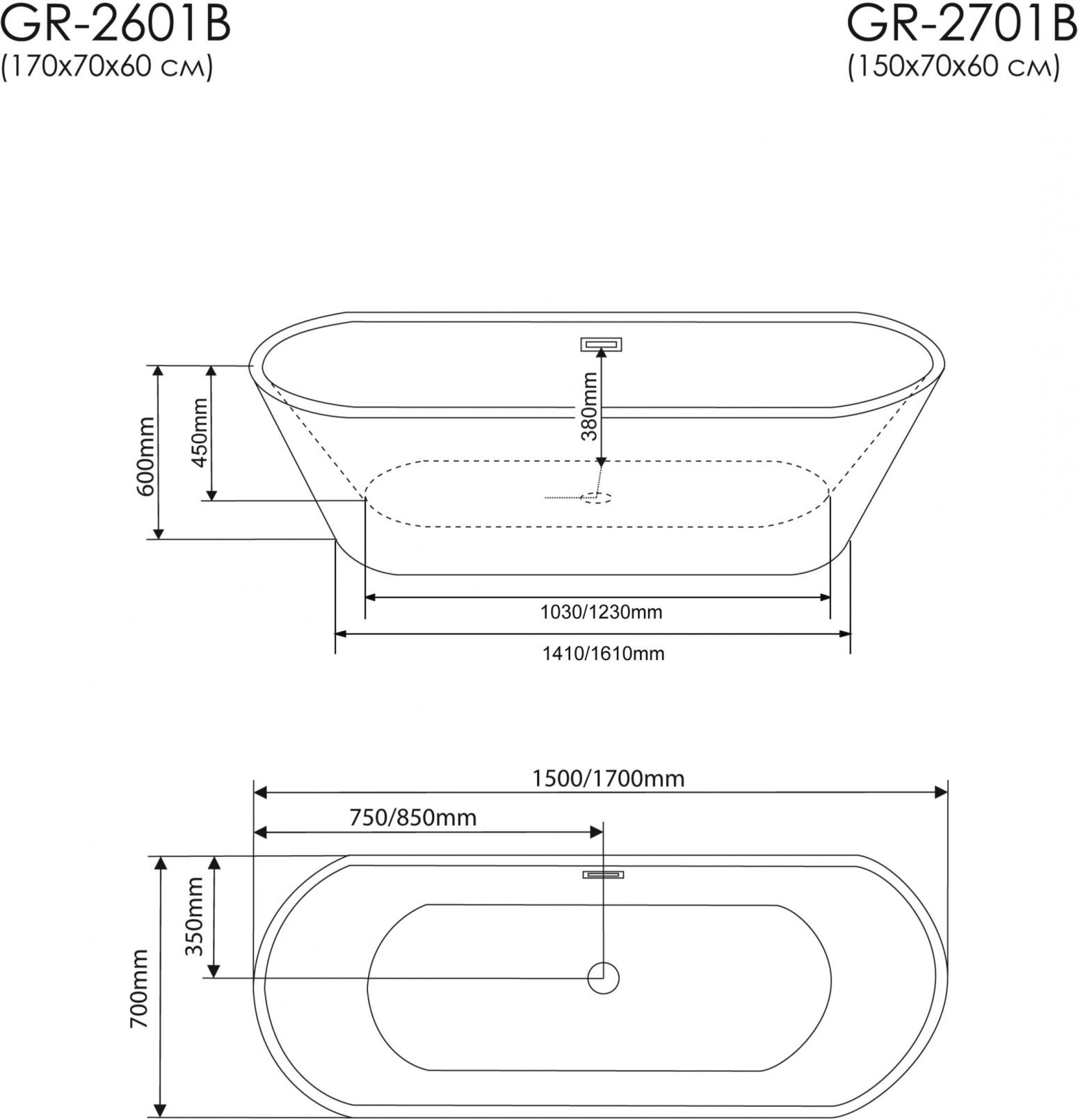 Акриловая ванна Grossman 170x70см чёрный GR-2601B
