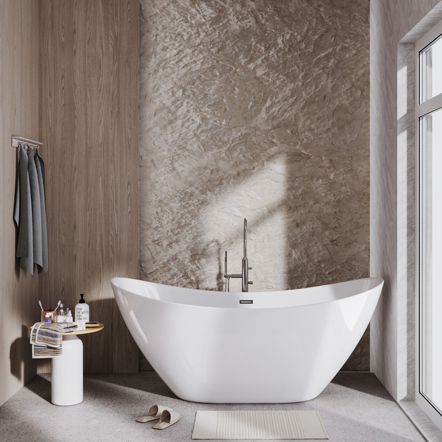 Ванна изготовлена из акрилового листа толщиной 5 мм, что обеспечивает прочность и долговечность изделия. Акриловый материал также приятен на ощупь и сохраняет тепло воды на длительное время, создавая комфорт при принятии ванны. Ванна выполнена в белом глянцевом цвете. Дополнительно, данная ванна обладает антибактериальным покрытием, которое предотвращает размножение бактерий и обеспечивает гигиеничность использования. Усиленный каркас ванны обеспечивает стабильность и надежность конструкции, что позволяет использовать ванну без опасений и сомнений. Четырехслойная армировка ванной усиливает ее прочность и структурную целостность, что делает ее стойкой к воздействию внешних факторов и повышает ее долговечность. Эта отдельностоящая ванна сочетает в себе функциональность, надежность и эстетическое привлекательность, создавая идеальное пространство для релаксации и ухода за собой в вашей ванной комнате.