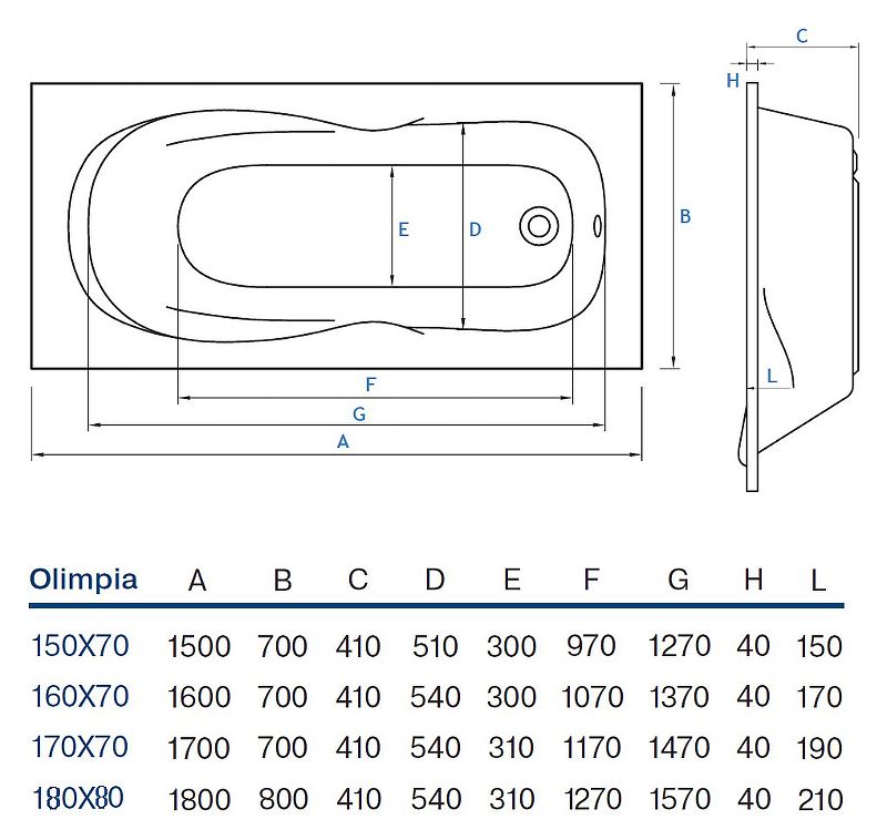 Стандартные размеры, см:170x70