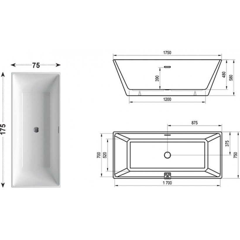 Акриловая ванна Ravak FREEDOM R 1750х750 XC00100021 отдельностоящая