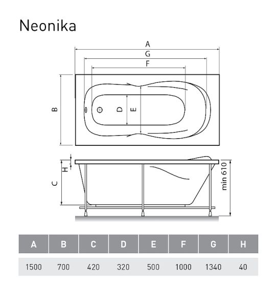 Акриловая ванна Relisan Neonika 160x70 Гл000000977 без гидромассажа