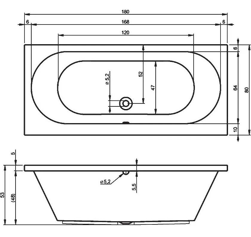 Прямоугольная акриловая ванна RIHO CAROLINA 180x80 изготовлена из высококачественного листа акрила глянцевого белого цвета