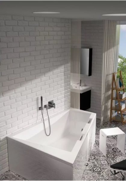 Doppio очень просторна, но благодаря своей скошенной форме ее можно использовать во многих ванных комнатах.
