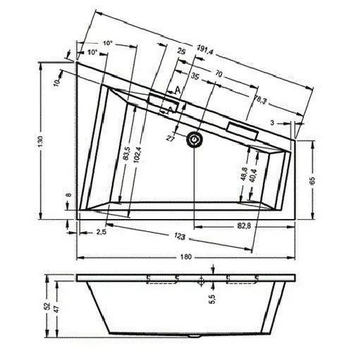 Асимметричная акриловая ванна RIHO Doppio 180х130R изготовлена из высококачественного листа акрила глянцевого белого цвета.